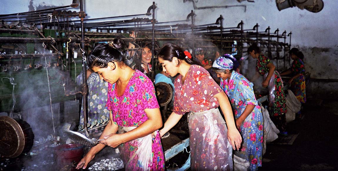Parmi les deux fabriques de soie installées à Marguilan, Yodgorlik est la seule qui a conservé une méthode manuelle de production de la soie.